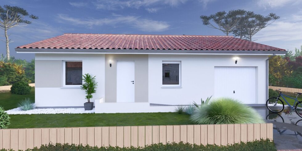 Construction sur vide sanitaire, élévation des murs en brique, couverture en tuiles terre cuite. (Terrain + maison – garantie d’achèvement et de livraison à prix et délais convenus incluse – DO incluse – Frais de notaire inclus – Hors adaptation au sol et raccordements – visuel non contractuel – non mandaté pour réaliser la vente du terrain vu avec nos partenaires).