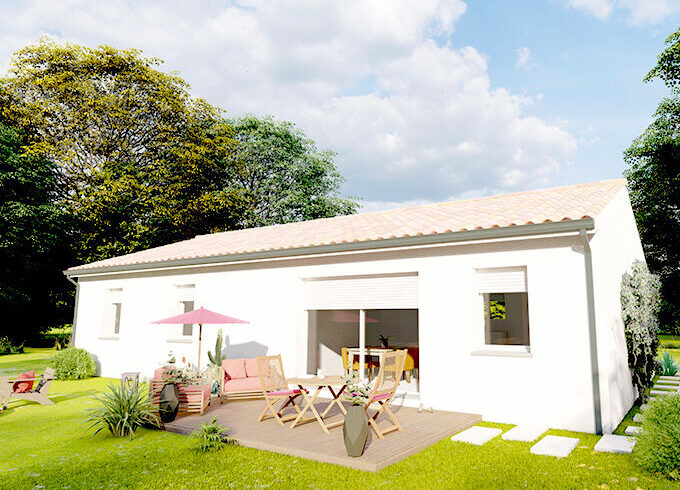 Ce projet est au prix de 173297 euros. Construction sur vide sanitaire, élévation des murs en brique, couverture en tuiles terre cuite. (Terrain + maison – garantie d’achèvement et de livraison à prix et délais convenus incluse – DO incluse – Frais de notaire inclus – Hors adaptation au sol et raccordements – visuel non contractuel – non mandaté pour réaliser la vente du terrain vu avec nos partenaires).