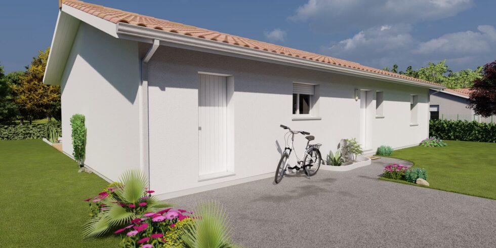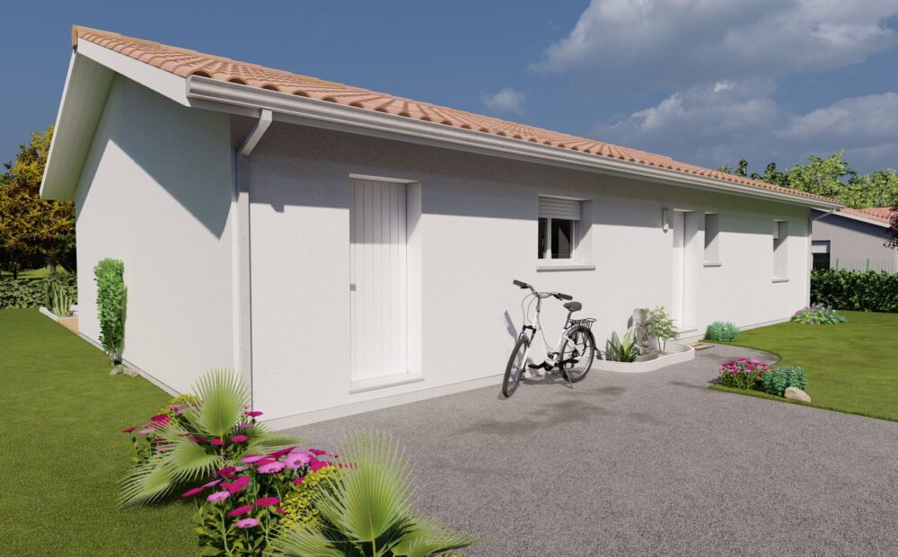 Ce projet est au prix de 185647euros. Construction sur vide sanitaire, élévation des murs en brique, couverture en tuiles terre cuite. (Terrain + maison – garantie d’achèvement et de livraison à prix et délais convenus incluse – DO incluse – Frais de notaire inclus – Hors adaptation au sol et raccordements – visuel non contractuel – non mandaté pour réaliser la vente du terrain vu avec nos partenaires).
