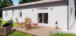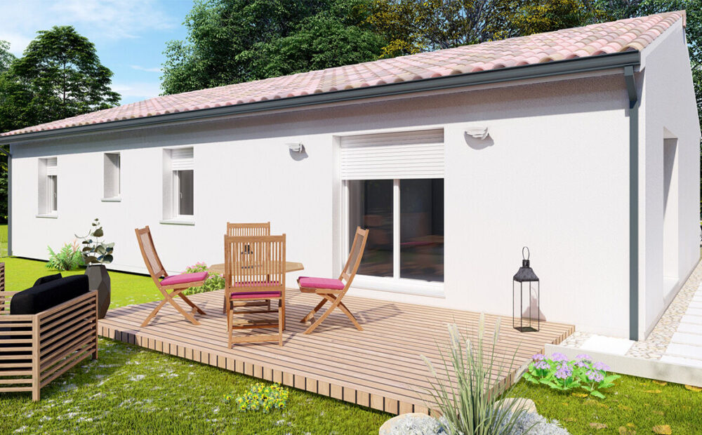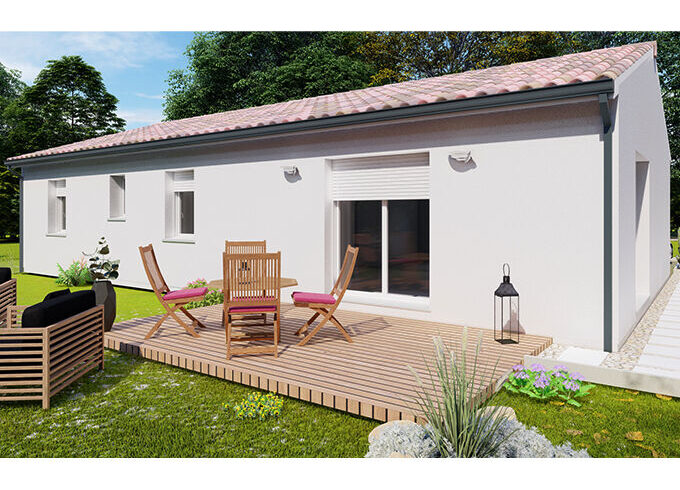 Ce projet est au prix de 171602 euros. Construction sur vide sanitaire, élévation des murs en brique, couverture en tuiles terre cuite. (Terrain + maison – garantie d’achèvement et de livraison à prix et délais convenus incluse – DO incluse – Frais de notaire inclus – Hors adaptation au sol et raccordements – visuel non contractuel – non mandaté pour réaliser la vente du terrain vu avec nos partenaires).
