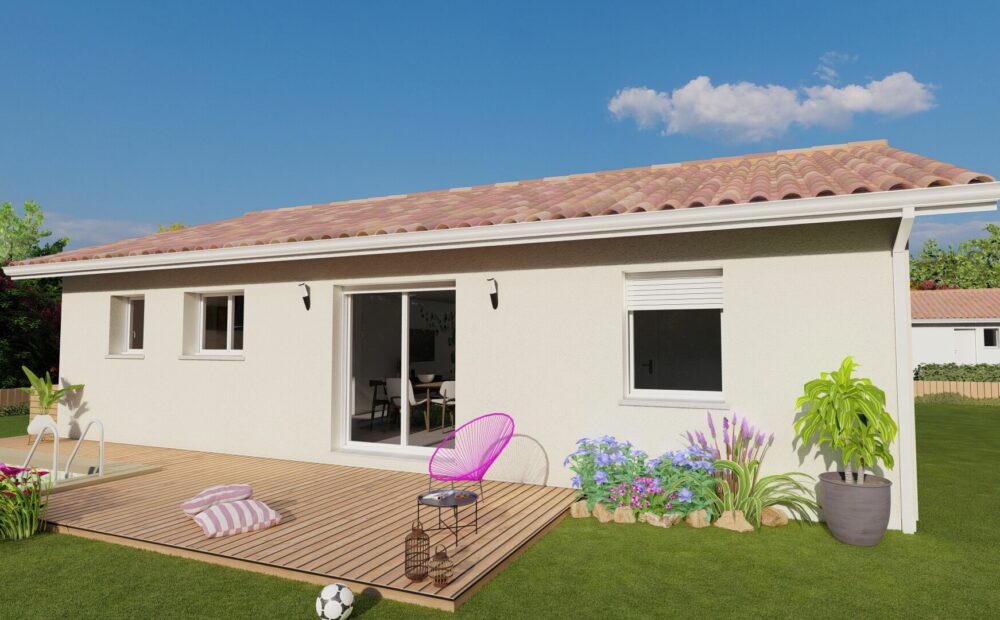 Ce projet est au prix de 152782 euros. Construction sur vide sanitaire, élévation des murs en brique, couverture en tuiles terre cuite. (Terrain + maison – garantie d’achèvement et de livraison à prix et délais convenus incluse – DO incluse – Frais de notaire inclus – Hors adaptation au sol et raccordements – visuel non contractuel – non mandaté pour réaliser la vente du terrain vu avec nos partenaires).