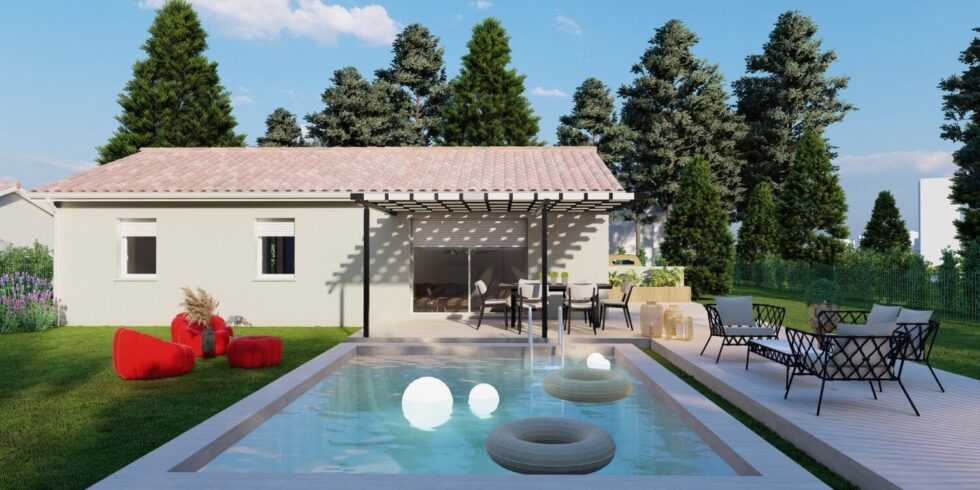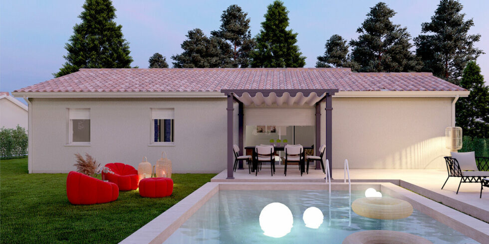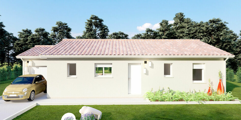 Ce projet est au prix de 158668euros. Construction sur vide sanitaire, élévation des murs en brique, couverture en tuiles terre cuite. (Terrain + maison – garantie d’achèvement et de livraison à prix et délais convenus incluse – DO incluse – Frais de notaire inclus – Hors adaptation au sol et raccordements – visuel non contractuel – non mandaté pour réaliser la vente du terrain vu avec nos partenaires).