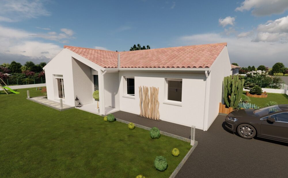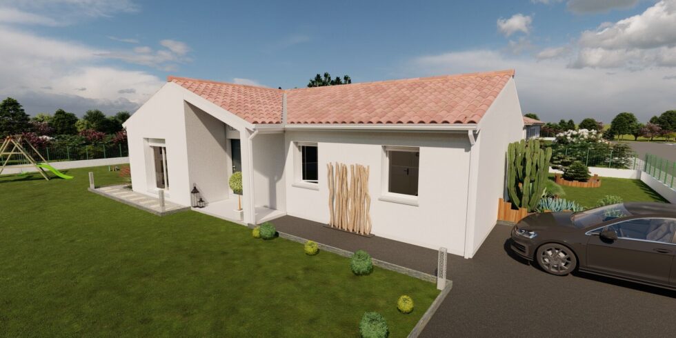 Ce projet est au prix de 179616 euros. Construction sur vide sanitaire, élévation des murs en brique, couverture en tuiles terre cuite. (Terrain + maison – garantie d’achèvement et de livraison à prix et délais convenus incluse – DO incluse – Frais de notaire inclus – Hors adaptation au sol et raccordements – visuel non contractuel – non mandaté pour réaliser la vente du terrain vu avec nos partenaires).