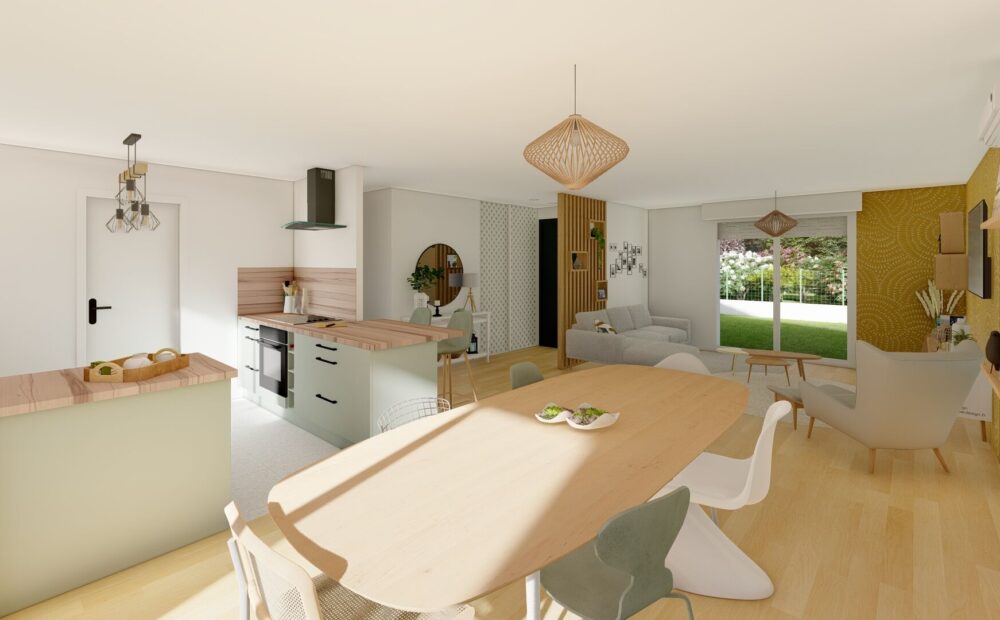 Découvrez cette maison à construire de 95m² , parfaitement pensée pour offrir confort et praticité au quotidien. Elle se compose d’une belle pièce de vie lumineuse avec cuisine ouverte, de trois chambres spacieuses avec placards, d’une salle de bains moderne, de WC séparés et d’un cellier.