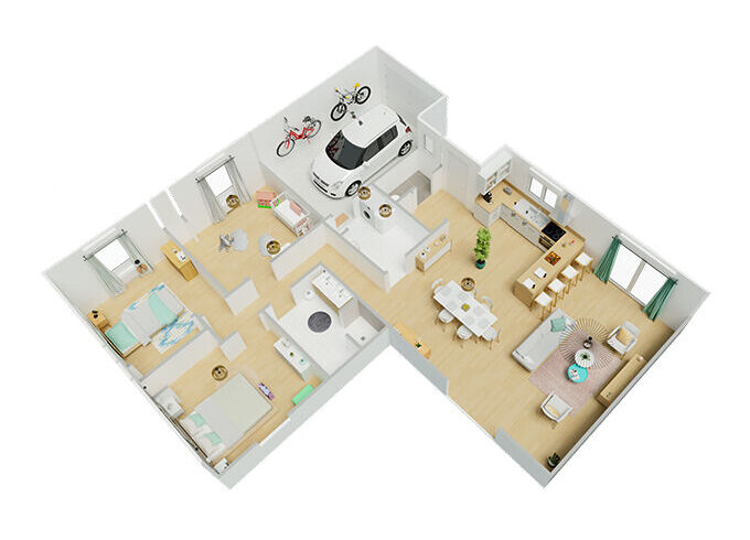 Projet Maison en L 3 chambres + garage