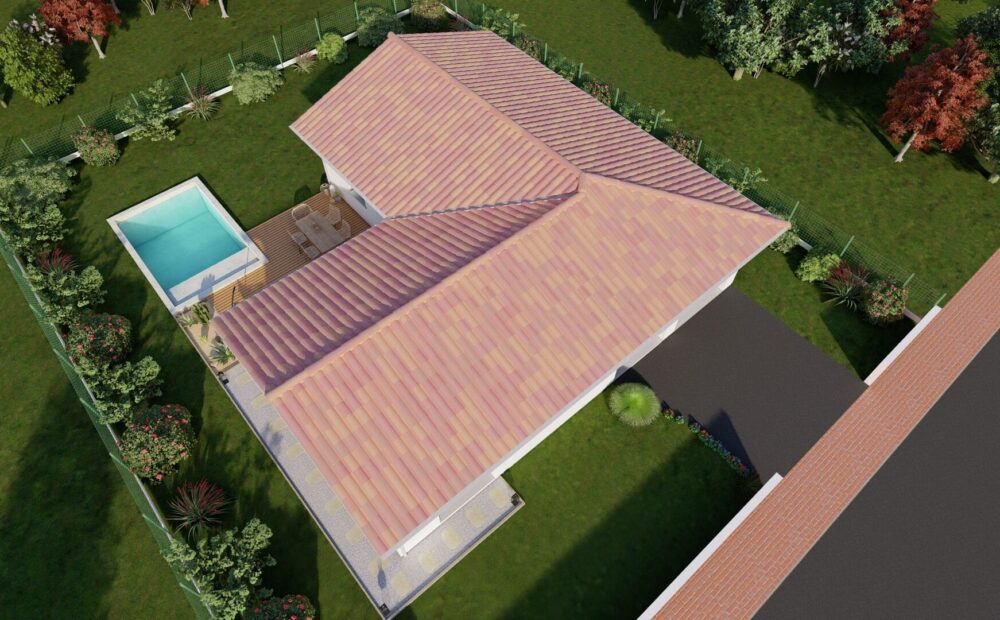Ce projet est au prix de 1824200 euros. Construction sur vide sanitaire, élévation des murs en brique, couverture en tuiles terre cuite. (Terrain + maison – garantie d’achèvement et de livraison à prix et délais convenus incluse – DO incluse – Frais de notaire inclus – Hors adaptation au sol et raccordements – visuel non contractuel – non mandaté pour réaliser la vente du terrain vu avec nos partenaires).